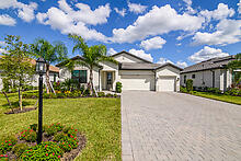SUMMER SAVINGS START NOW – PRICE REDUCED! Why wait to build when you can own this stunning, move-in ready pool and spa home today? SELLER TO CONSIDER ALL REASONABLE OFFERS. This pristine newly-built Steller floor plan offers 3 spacious bedrooms, 3 full baths, a den/flex room with elegant French doors, and a 3-car garage with 4-foot extension and 220v charging outlet. Over $100,000 in upgrades, including a whole-house 18kW natural gas generator, impact windows and doors, and luxury finishes throughout. Step inside to an open layout featuring a gourmet kitchen with new stainless steel KitchenAid appliances, beverage cooler, upgraded 42” white cabinets, quartz countertops, oversized island, custom backsplash, and modern lighting. Zero-corner sliding glass doors create seamless indoor-outdoor living, leading to a screened lanai with sparkling pool and spillover spa overlooking serene water and preserve views. The owners’ suite boasts an oversized walk-in shower, dual vanities, and large custom closet. A private guest ensuite and third bedroom provide ample space for visitors. Furniture package available. Located in Oak Creek, Del Webb’s newest 55+ award-winning community, just one mile west of I-75. Enjoy resort-style amenities including clubhouse, pools, spa, fitness center, Bocce, Pickleball, restaurants, and full-time lifestyle director. Minutes to shopping, dining, RSW airport, Gulf beaches, and the Fort Myers River District. Call today to schedule your private tour and take advantage of summer savings on this brand-new home.